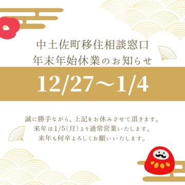 高知県中西部に位置し、人口は約6,000人。海・山・川と揃っており、高知がぎゅっとつまった魅力的な町です。初めて会う人に気軽にあいさつや話しかける気さくな町民の方も多く、温かい雰囲気と心地よい距離感の町の人々。田舎ながらも、スーパー・飲食店・温泉などもあり程よく田舎暮らしができます。 2025.12.28お知らせ 年末年始のご挨拶 2025.12.09最新情報 2025年12月12日(金)チャレンジショップ「おおのみや」オープンします。 2025.12.04コラム 【移住者インタビュー】20代で地元に戻るって、実際どう? 中土佐町・大野見で働く23歳の本音 2025.12.02最新情報 「高知暮らしフェア冬」中土佐町も参加します! 中土佐町へ移住をお考えの方向けに、暮らしの情報をまとめました。 すまい しごと 子育て 移住体験 地域おこし協力隊 補助金 高橋 柊人さん中土佐町役場 職員2024年 Uターン 白方 幹大さん地域おこし協力隊2025年 Iターン 「移住って何から始めたらいいの?」 移住までの4つのステップにまとめました。ケース別の移住の流れもあわせてご覧ください。 中土佐町への移住に役立つ情報をまとめました。 移住体験住宅 オーダーメイド型 移住体験ツアー 空き家バンク 地域おこし協力隊 防災・災害対策 ふるさと ワーキングホリデー よくある質問