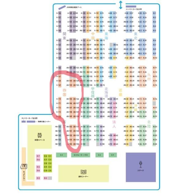 中土佐町のブースは、会場入って右奥(フロアマップ上で赤で囲っている)あたりです!(おそらく…)